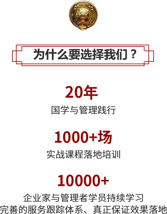 集眾家之長,成一家之言;盡一己之力,造萬家之福,系統(tǒng)研究《儒》、《釋》、《道》、《兵》、《法》、《易》、《帝王學(xué)》,成就企業(yè)家自己的價(jià)值觀與事業(yè)基礎(chǔ),實(shí)現(xiàn)平衡、幸福、卓越的人生